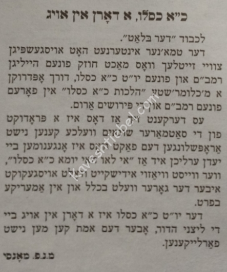 די כ"א כסלו געשיכטע גוט אראפגעלייגט קורץ אין שארף.