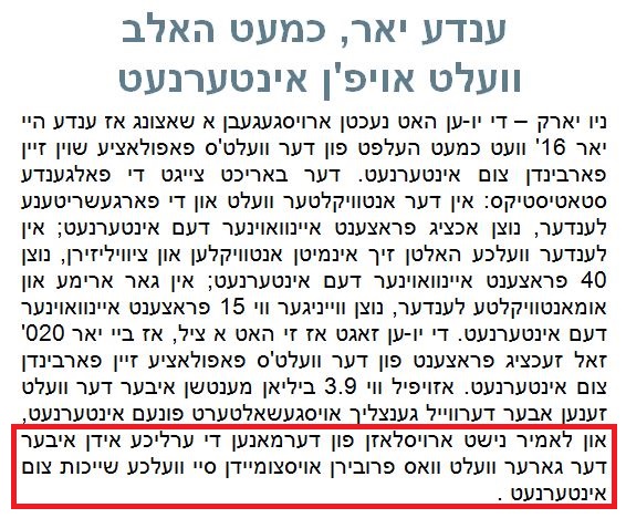 תנחום: אבער אין בלאט וועט שטיין באריכטעט אז דער הויפט שלעגער האט זיך מוסר געווען אויף קדשי בני ישראל. און די אפטריניגע פון די קצה המחנה (אפשר גאר אויכעט ציונים, וועלכע האבן די טרייפענע סמארטפאונס.) האבן געהאט די נידערטרעכטיגע חוצפה צו גיין מסר'ן די ערליכע אידן. די ברכיים אשר לו כרעו לבעל. וואס נאך א מזל אז אונז וואוינען אין די מלכות של חסד אז מ'האט איהם נישט איינגעזעצט. חוץ די טמא'נע טעלעוויזיע פון טשענעל 12 איז געקומען און באריכטעט. ווייל אין די טמא'נע מדינה וואס די רבי זי"ע האט שטארק געשריגן אקעיגן, וואלטן די רשעי ישראל איהם שוין פון לאנג איינגעזעצט און ער וואלט נישט געקענט אהיימגיין מאכן קידוש פאר זיין בני בית. אויב דאס וואלט געווען אום שבת קודש.