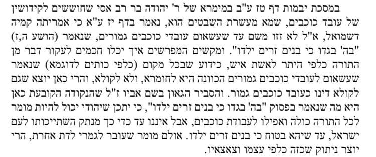 דא קען מען זעהן ווי מ׳האט דאס צענזורירט און ארויסגענומען דעם אות נד.עיקר היהדות – בקריאת שם ישראל. כמו שנאמר זֶה יֹאמַר לַה' אָנִי וְזֶה יִקְרָא בְשֵׁם יַעֲקֹב וְזֶה יִכְתֹּב יָדוֹ לַה' וּבְשֵׁם יִשְׂרָאֵל יְכַנֶּה (ישעיה מד, ה). שלא יהיה לו רק מעלה זו שמכונה בשם ישראל די. ומצינו בריש פרק כלל גדול (שבת סח:) גר שנתגייר בין האומות ומביא חטאת על החלב והדם והשבת ועבודה זרה, עיין שם דלא ידע כלל שזה אסורה ואפילו על עבודה זרה ושבת. ונמצא שלא ידע כלל מכל התורה, ובמה הוא גר להתחייב חטאת, רק בקריאת שם ישראל די.