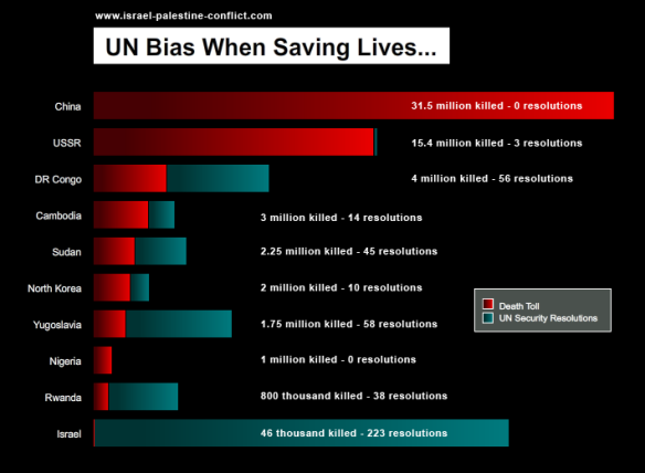 The UN has a history of condemning Israel to a staggering and disproportionate extent (see image) and virtually,
