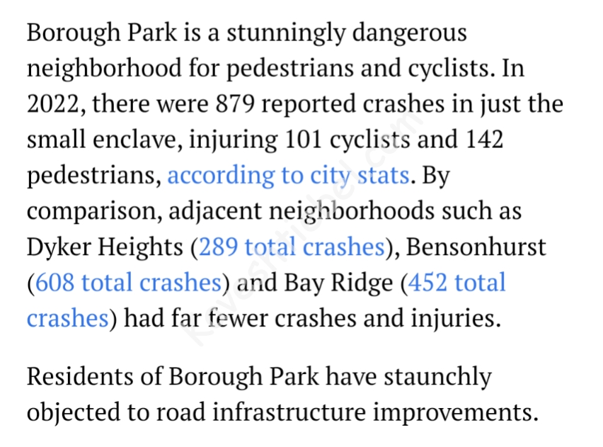 מ'דארף נישט צוקומען צו streetsblog זאל אונז דערציילן ווי סכנה'דיג אונזערע גאסן זענען. יעדער וואס דרייט זיך אין בארא פארק וויליאמסבורג, מאנסי, מאנרא וכו' האט שוין בייגעוואינט עטליכע שיעור קאטאסטראפעס וואס איז פארמיטן געווארן מיט ניסי ניסים. אינגעלייט און בחורים רייסן ארום ווי חיות ממש, אריינלייגענדיג אזויפיל אנשים נשים וטף אין סכנה. ועל נסיך שבכל יום עמנו ועל נפלאותיך שבכל עת, ב"ה אז מ'הערט נישט אזוי אפט א טראגעדיע, אבער אין סומכין על הנס און עפעס מוז געטון ווערן.