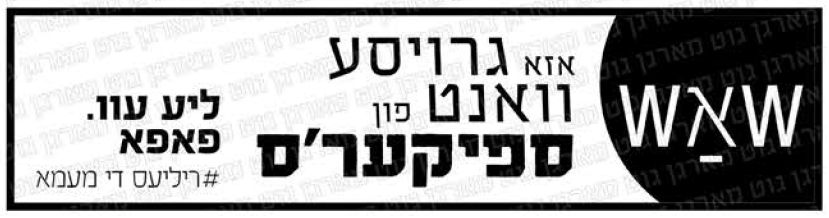 אויף אייוועלט האט איינער קאמענטירט אז אין זייער נעקסטע עד וועט שטיין: א גאנצער וואנט פון "ספינקער'ס"...