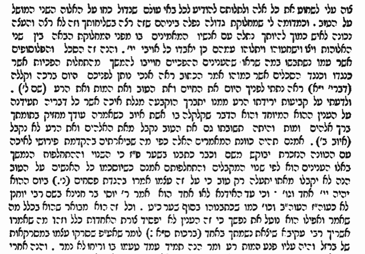 וראה כי בני עמנו הסכלים היו נאנחים ומתאוננים על תלונת צדיק ורע לו, כי הם היו חכמים וצדיקים בעיניהם כמנהג המונינו כולם גם היום, ולכן אין הצור תמים פעלו, ולכן זכר שלש כונות צדיק ורשע וצדיק, והניח על הראשון שהוא יהיה לו אורך ימים וטובות בעוה״ז, כי לא דבר יחזקאל לאלה החזרים על השארת הנפש או הפכה, אבל לא דיבר רק לפי תלונותיהם, והם לא היו משערים כלל רק חיי העוה״ז וטובותיו או הפך זה, והעד משל הבוסר, כי מי יודע אם שני הבנים תקהינה בעוה״ב ולכן הנפש החוטאת היא תמית, כמו ונכרתה הנפש האוכלת (ויקרא ז כה), ובכלל כי על הראש והראשון, שלא נביט כלל לאביו ואמר כי בעבור שהיה צריק הנה יהיה טוב לו בעוה״ז, ובנו הפריץ בעבור שהוא חוטא יהיה לו רע, ולא תועיל לזה הבן צדקת האב אביו, ואחר בן הפריץ הזה כי יהיה צדיק יהיה לו טוב ולא תזיק לו רשעת אביו, וזה הוא משפט השם ית׳ ודינו כראוי לו.