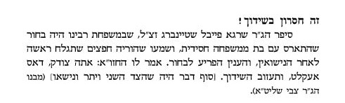 דער רעדנער איז אן אדמו"ר וואס לויט חוקי הנימוס טאר מען נישט אזוי רעדן אויף איינער וואס זיין טאטע האט עהם איבערגעלאזט א קהילה צו פירן