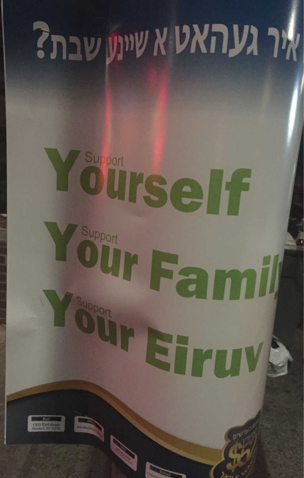 און אגב אורחא, קורץ נאכ'ן מאכען די עירוב אין ב.פ. בין איך געווען ביי א ברית און דער סערדעהעלער איז געווען מוהל. ביים סעודה האט ער צוזאם גערעדט וועגען זיין עירוב. דער אגענדע האט געטראפקעט פון אלע זייטען. נישט קעגען סאטמאר נאר קעגען ליטווישע. צוזאמענגעשטעלט חלב עכו"ם מיט שחיטה מיט איך ווייס וואס, כאילו דאס האט עפעס מיט הלכות שבת