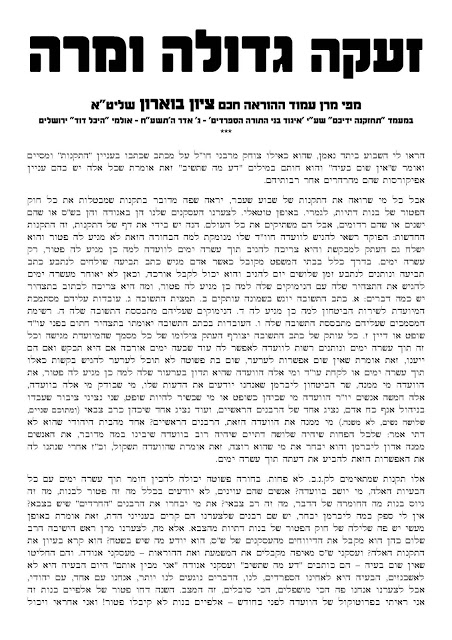 ליטוואק פון בודאפעסט: דער גאון וצדיק הדור וואוינט דאהי אין אמעריקע...איך בין געווען אין זיין אוצר הספרים מיט יארן צוריק. האביך געזעהן די מחזה...! איך מיין אז ער האט שוין ..."תשובה"...געטון. לויט ווי מ'הערט זיין השקפה די לעצטע פאר יאר...!