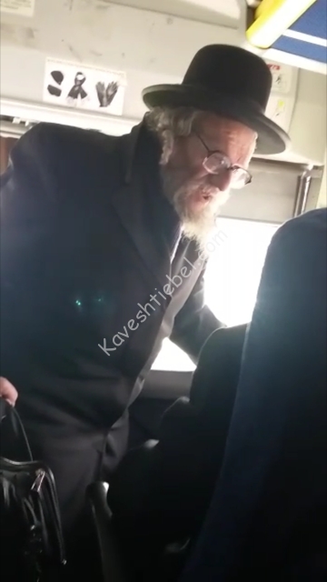 אבער אז ס׳זאל קומען צו גיין אן אלטע אזיאטישע אידיאט און תובע זיין פון א פאסאזשיר — וואס האט באצאהלט טבין ותקילין פארן רייזע און האט דעם פולסטן רעכט צו נעמן סיי וועלכע ליידיגע פלאץ ס׳גלוסט עם — אז ר׳זאל עוקר זיין ווייל פאר דעם אלטעטשקן האט זיך פארשמעקט דוקא אט דעם זיץ איז טפשות און רשעות אינאיינעם. אויב איז יענער א איד א תלמיד חכם איז ער א חמור נושא ספרים. אין הלכה ווערט געברענגט קלאהר אז מ׳זאל נישט מכביד זיין מיט קימה וכו׳ וזה ידוע. ווען איך בין בעה״ב וואלט איך געשטעלט טערמין פאר׳ן אלטן פאסקודניאק: טרעף דיר א צווייטע פלאץ אדער שטייג אפ פון באס; טעראריזיר נישט די אנדערע פאסאזשירן.